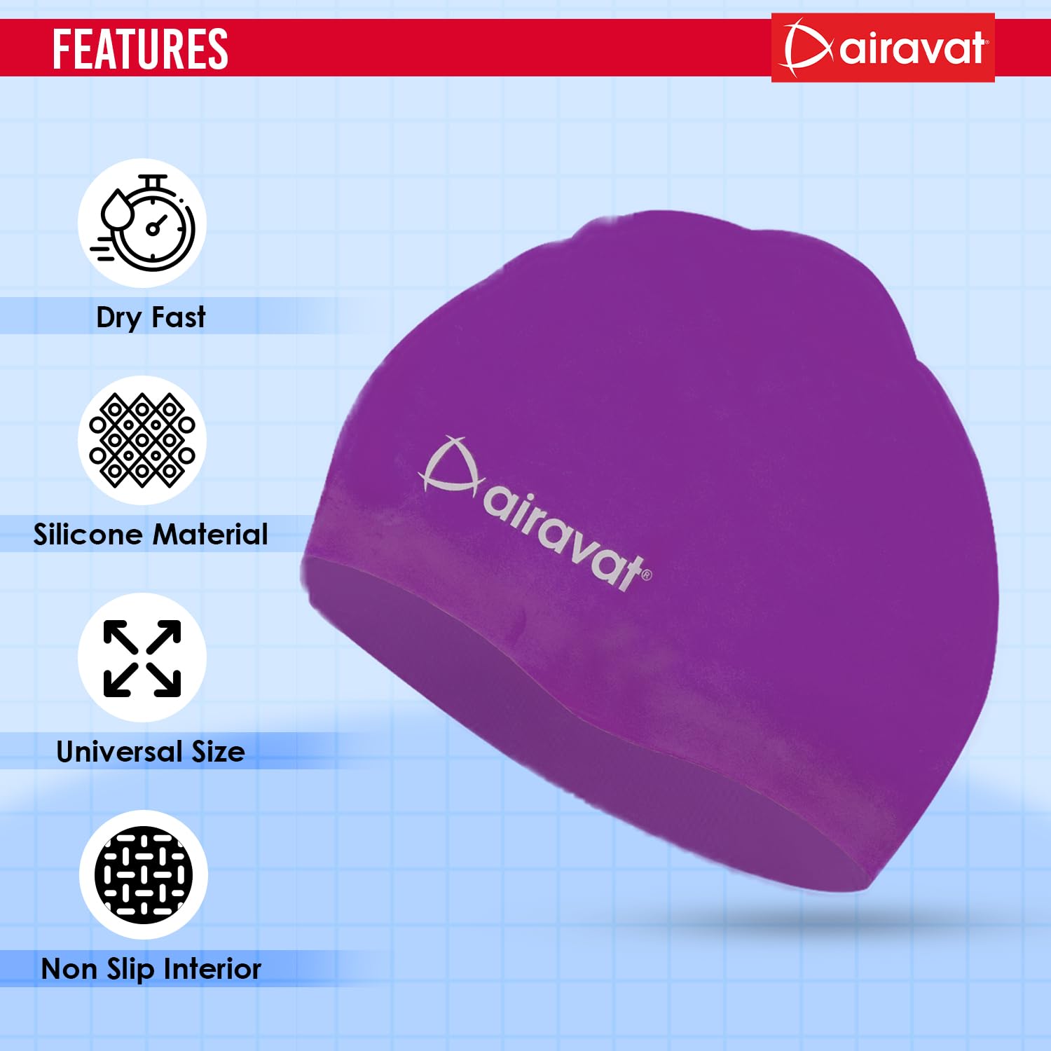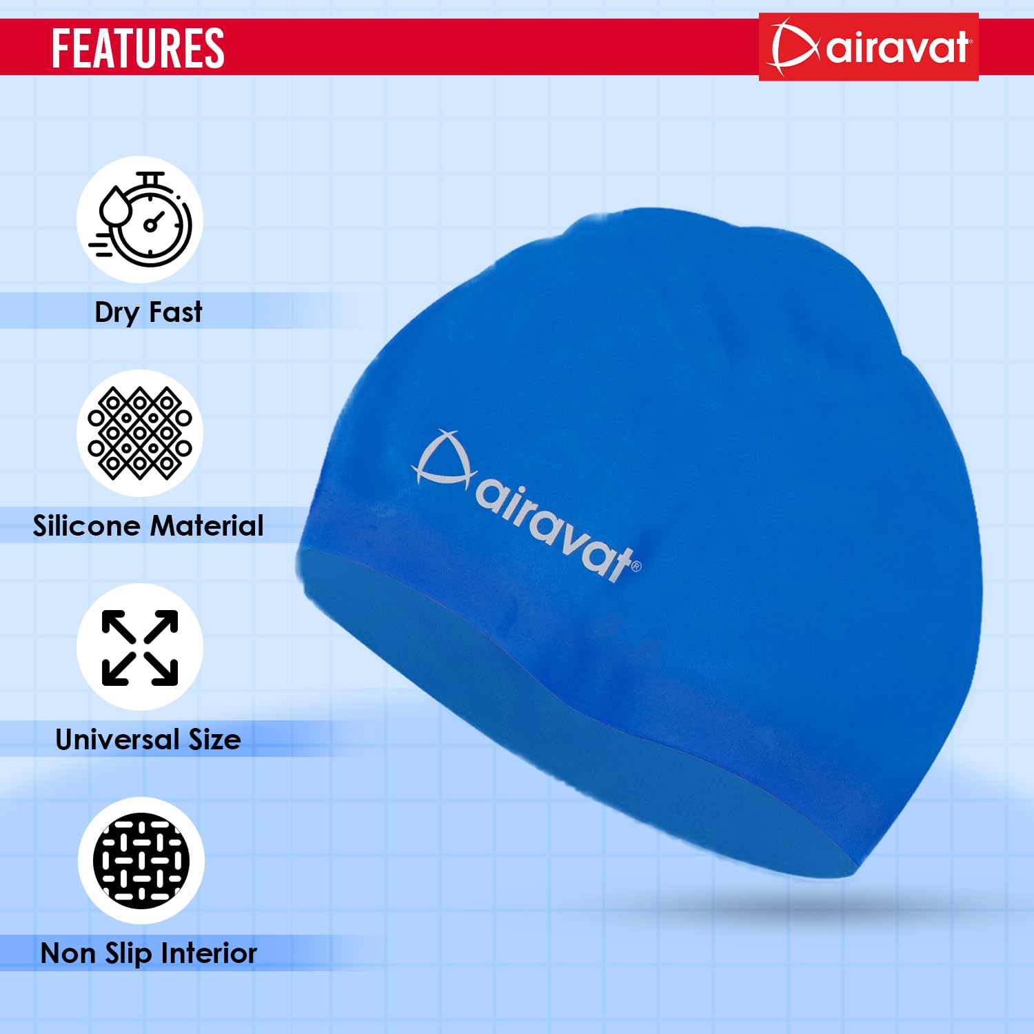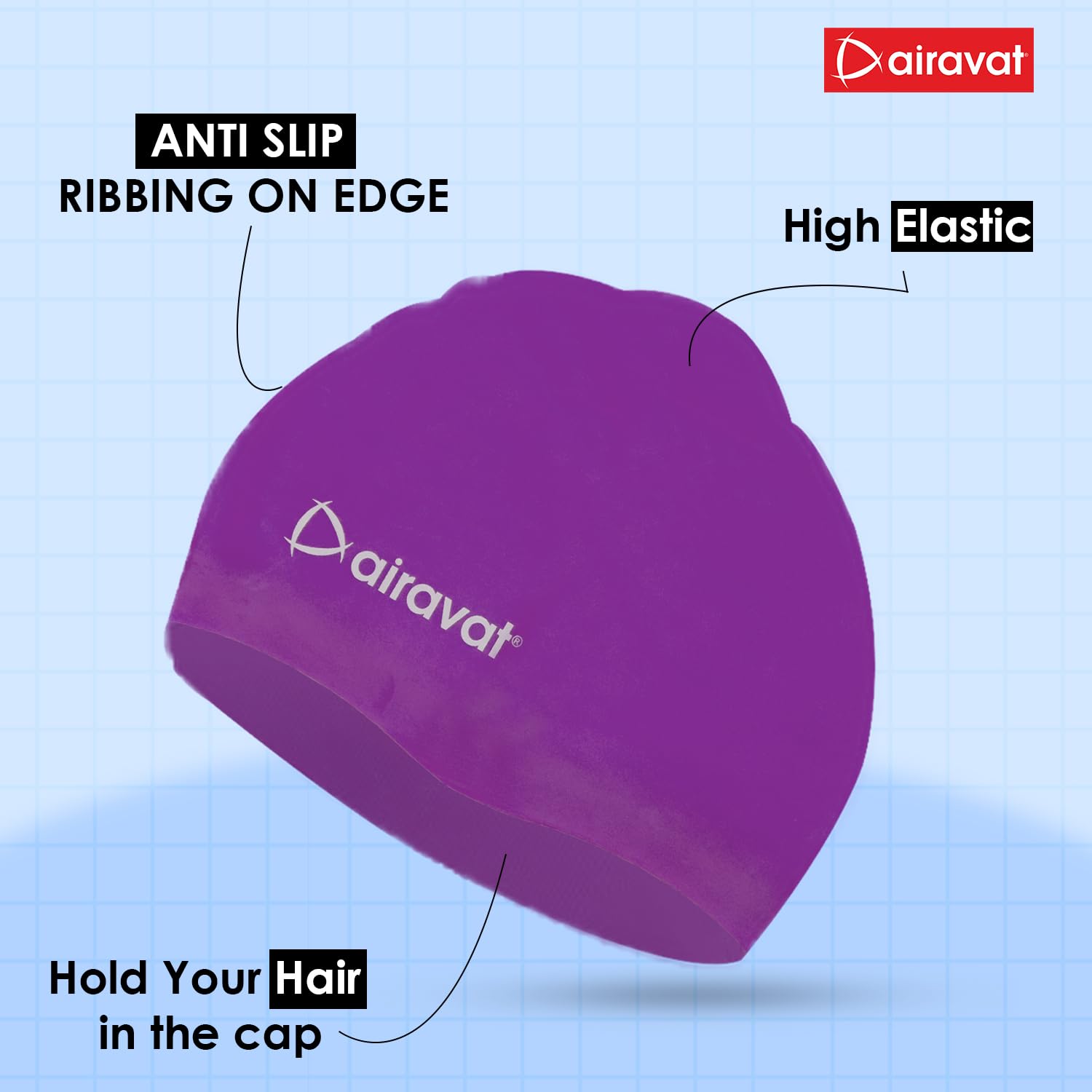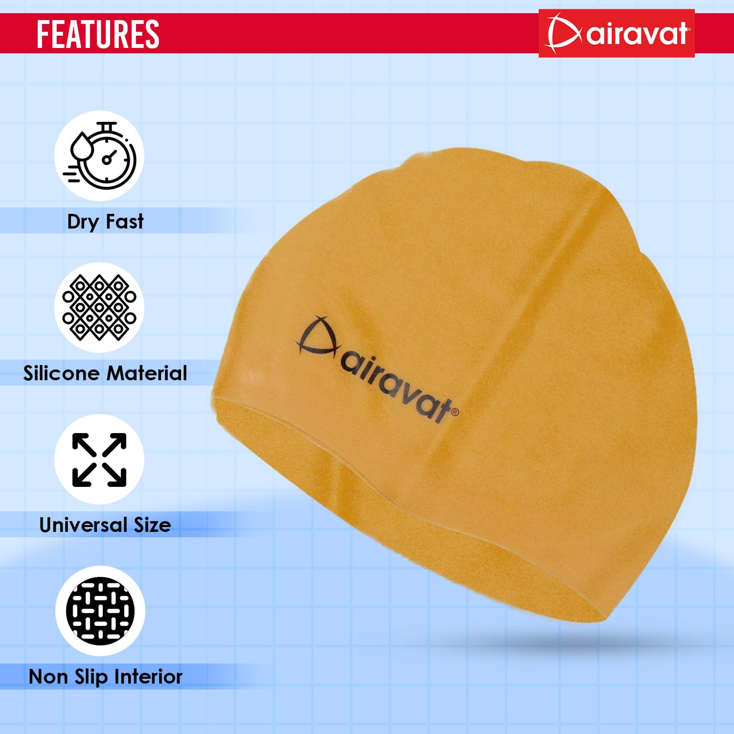 - SILICON MATERIAL: AIRAVAT Silicon swim cap is a popular material for swim caps due to its durability and flexibility. It's able to hold its shape over time and is resistant to chlorine and other chemicals in the pool.