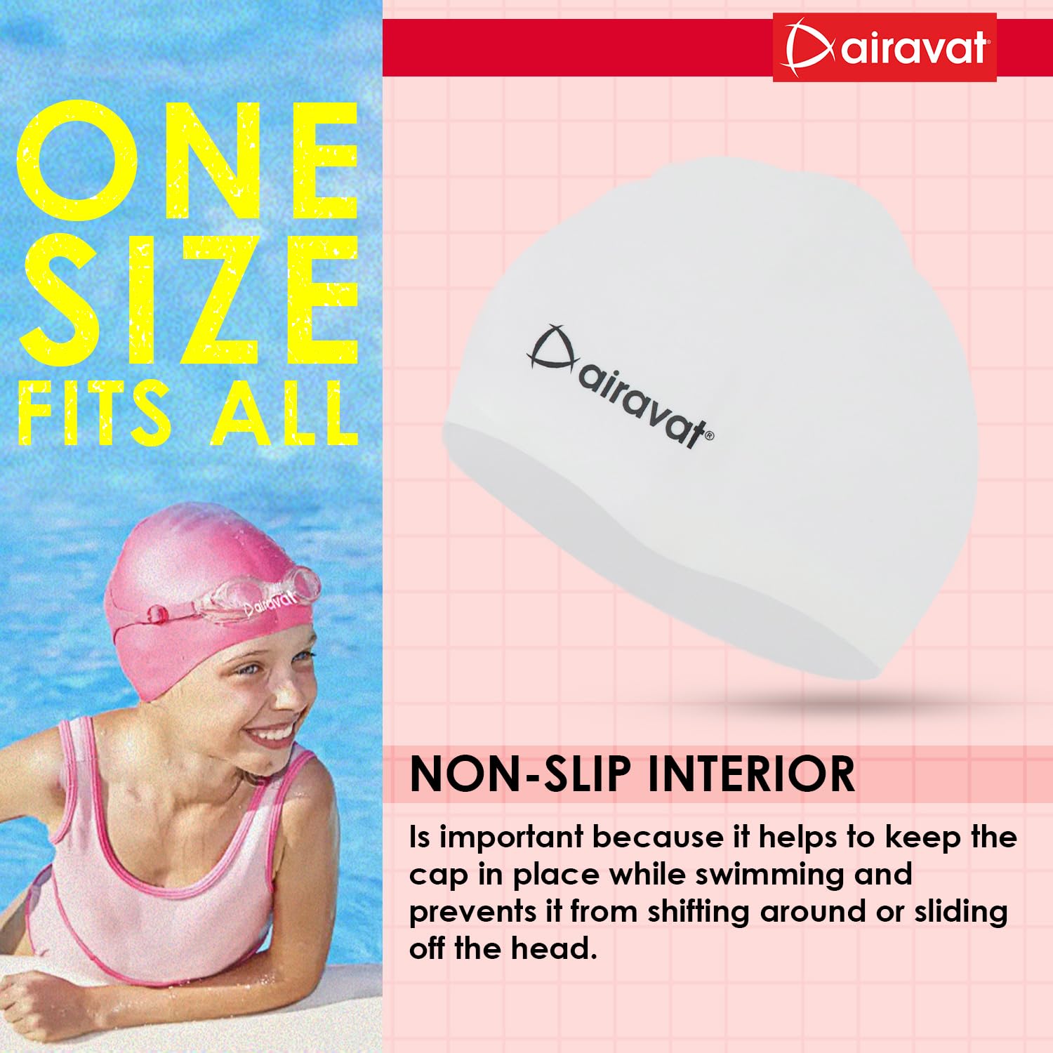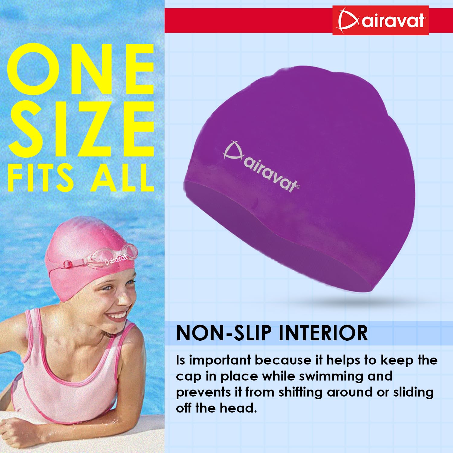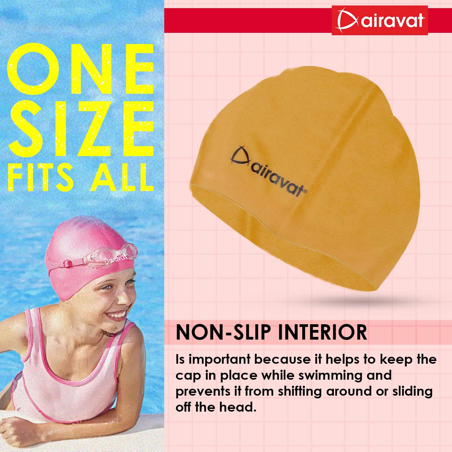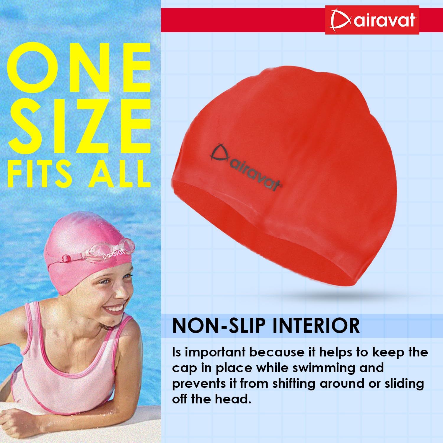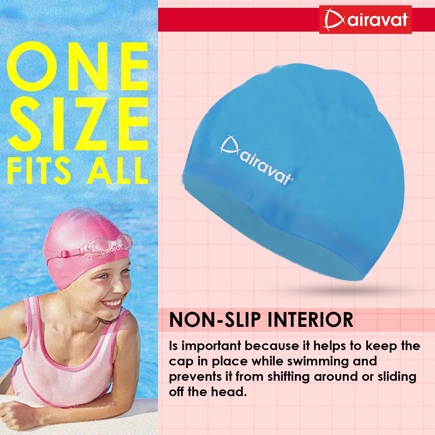 - SILICON MATERIAL: AIRAVAT Silicon swim cap is a popular material for swim caps due to its durability and flexibility. It's able to hold its shape over time and is resistant to chlorine and other chemicals in the pool.