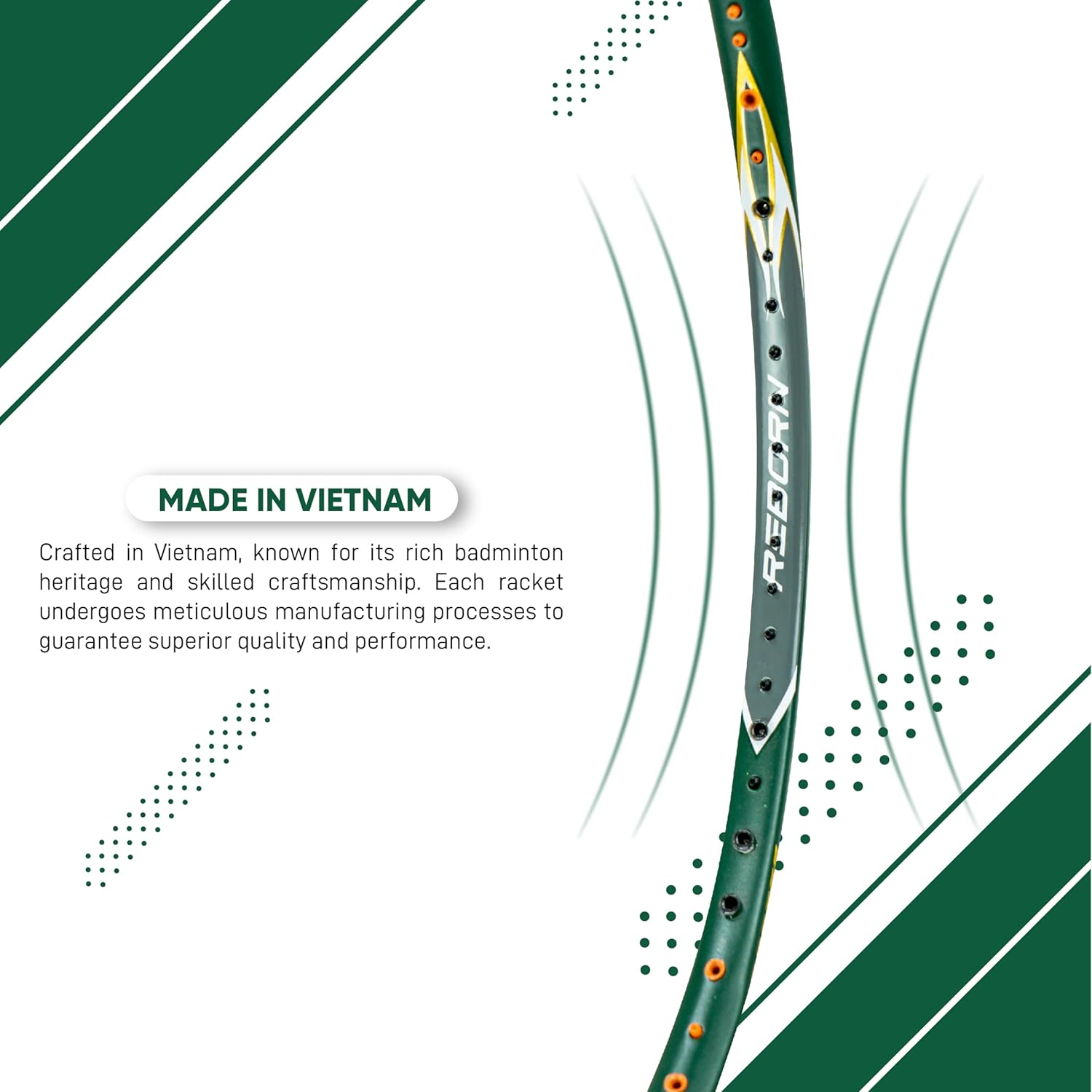 - Made in Vietnam: Crafted in Vietnam, known for its rich badminton heritage and skilled craftsmanship. Each racket undergoes meticulous manufacturing processes to guarantee superior quality and performance.