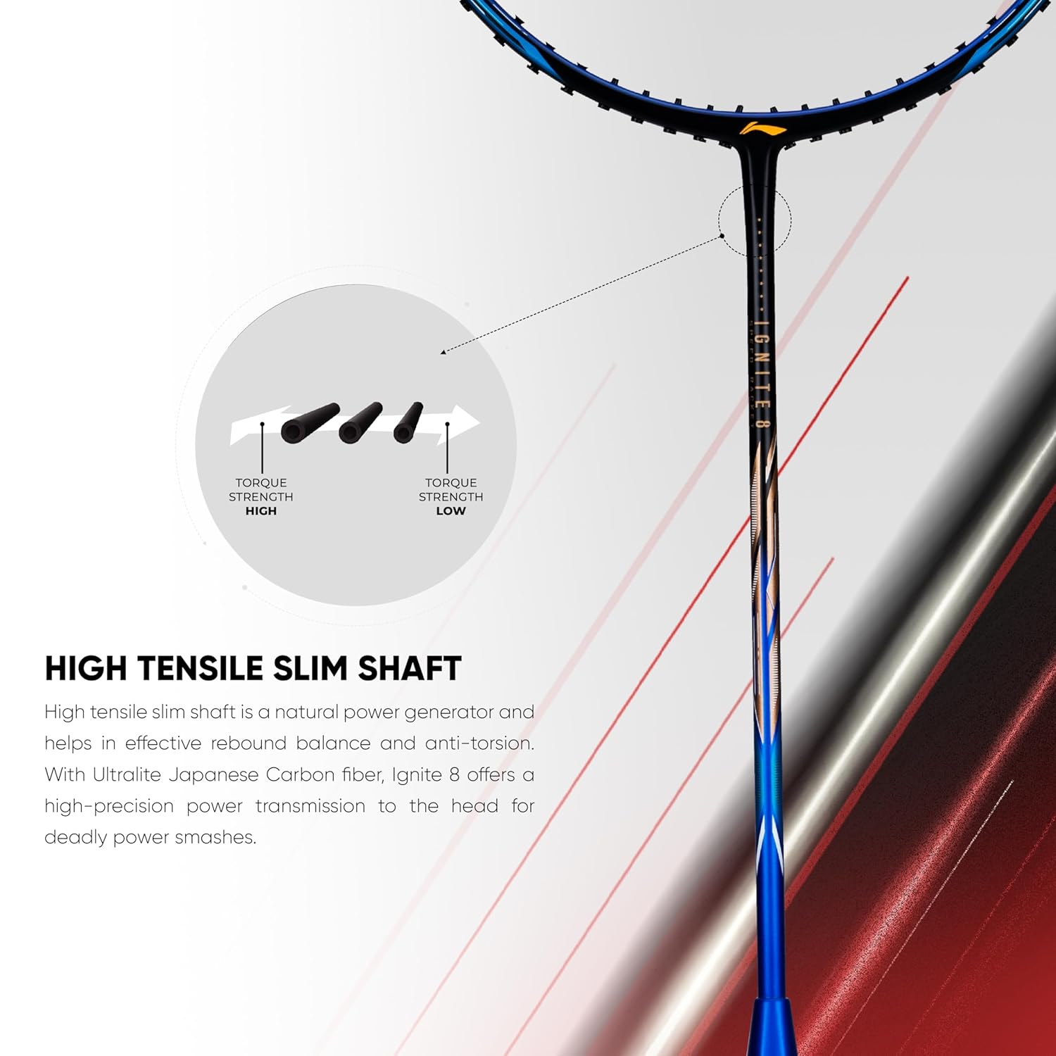 Li-Ning's Ignite is one of a kind professional racket with a head heavy balance for attackting and an ultralite Japanese carbon graphite to complement this attacking power. Enhance with AeroTec Beam system, compresses groove for better accuracy and control and a frame made with TB Nano technology - the Ignite racket is the perfect weapon of destruction on the court with an ace up its sleeve