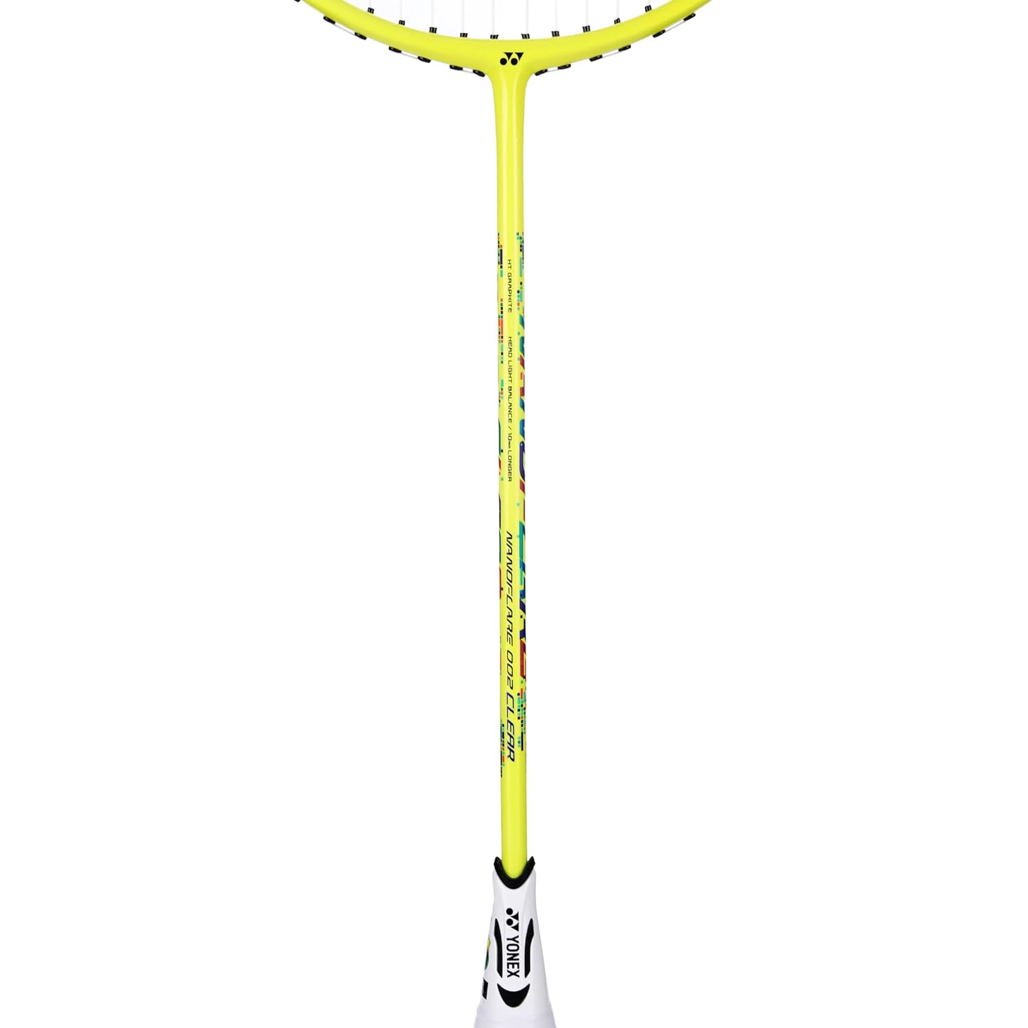 The Yonex Nanoflare 002 Clear badminton racquet is meticulously designed to cater to the needs of beginners and youth players, offering an ideal blend of performance, durability, and comfort. The racquet is strategically engineered with a head-light balance, meaning the weight distribution is more towards the handle than the head. The racquet incorporates a flexible shaft, which plays a crucial role in enhancing power strokes. One of the standout advantages of the Nanoflare 002 Clear racquet is its ability to minimize arm strain during play. The combination of the head-light balance and flexible shaft helps reduce the strain on the player's arm, wrist, and shoulder, mitigating the risk of injuries such as strains or tendonitis.
