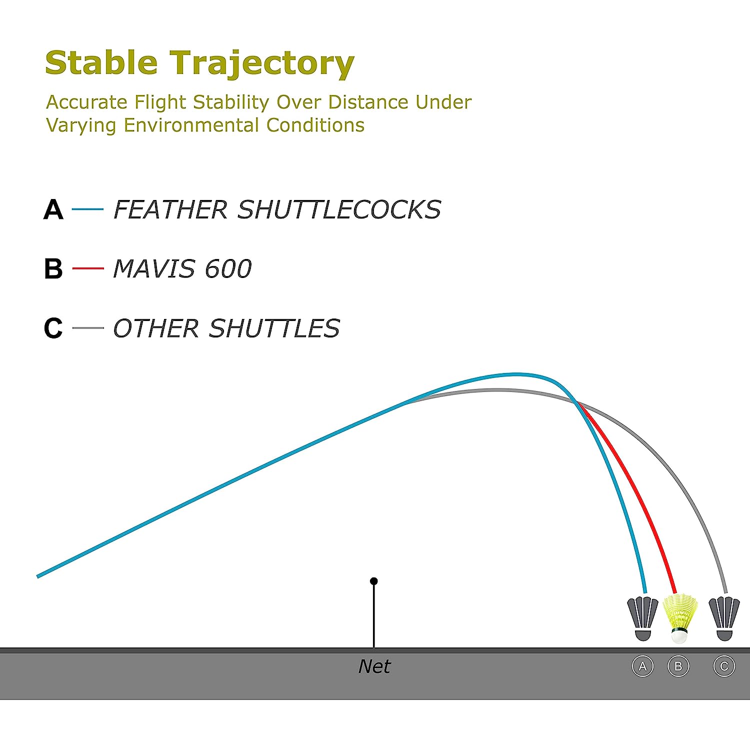 YONEX Mavis 600 Green Cap Yellow Nylon Shuttlecock is designed to variety of serve speeds. The shuttlecock is made of recycled cork base and nylon skirt. It lets the player hit consistent and fast shots. It provides slow speed.